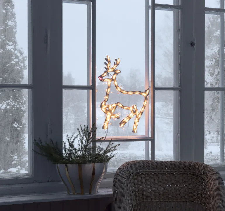 Konstsmide 2174-010 on valokoriste (poro), jossa on 50 lämpimän valkoista LEDiä. 230V/IP20.