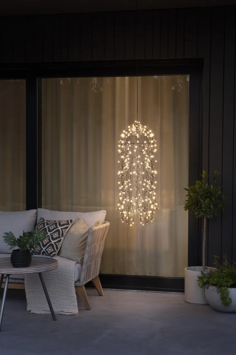 Konstsmide 3916-700 on musta valokoriste 95×30 cm, jossa on 400 lämpimän valkoista LEDiä. 30V/IP44.