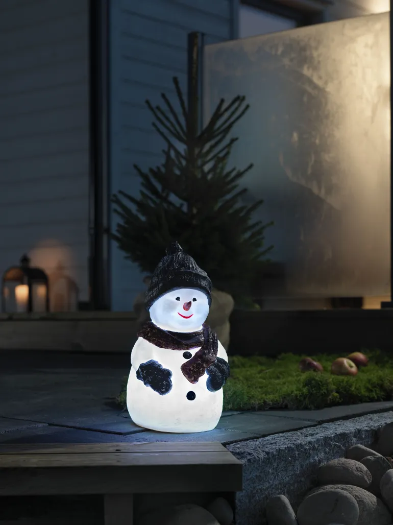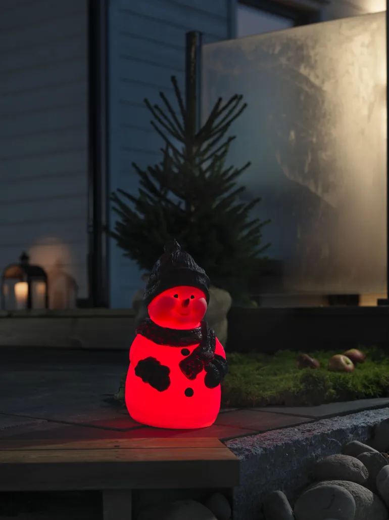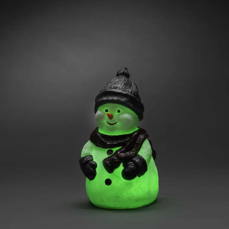 Konstsmide 4248-000 on joulukoriste (lumiukko), jonka materiaali muovi. 1 RGB-LED, väriä vaihtava. 4,5 V/IP44.