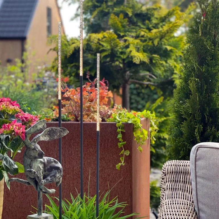 Huom! Aseta valaisimet ensin paikoilleen ennen kuin kiinnität akryylilasikuvun. Jos painat valaisimen maahan lasiosasta, voi lasi haljeta. On myös tärkeää, että pieni kumitiiviste asetetaan oikein, jotta vesi ei pääse valonlähteeseen ja vahingoita LEDiä.