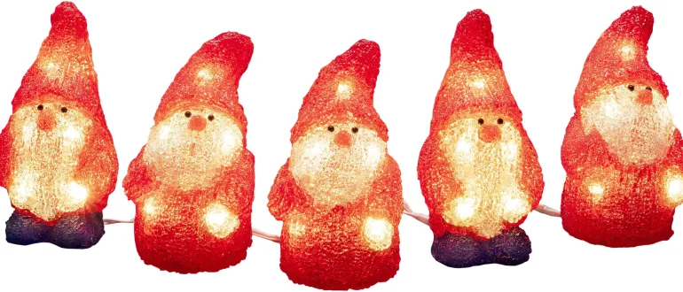 Konstsmide 6240-103 on valokoriste akryylia (5 kpl tonttuja), joissa on 40 lämpimän valkoista LEDiä. 24 V/IP44.