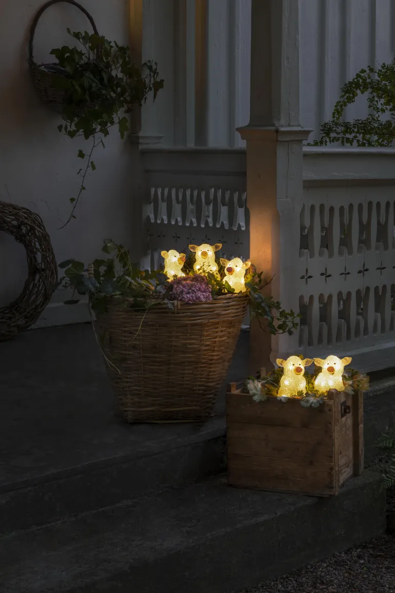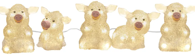Konstsmide 6232-103 on valokoriste akryylia (5 kpl possuja, läpikuultavia), jossa 40 lämpimän valkoista LEDiä. 24 V/IP44.