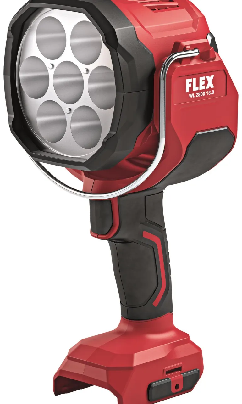 Flex WL2800 on paristokäyttöinen 12/18V käsikäyttöinen valonheitin. Tehokas LED-valonheitin, joissa on 2 kirkkaustasoa, 2800 lumenia ja 1000 lumenia. Lisäksi siinä on ylimääräinen punainen LED-valo, joka vähentää sirontaa ja häikäisevyyttä. LED-valaisimen päätä voidaan kääntää 180° optimaalisen valaistuksen takaamiseksi joka nurkassa ja kulmassa.