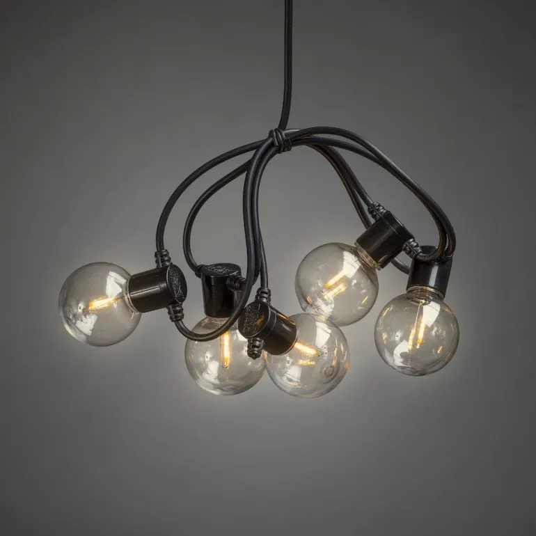 Paristokäyttöinen valosarja sisältäen 10 kappaletta LED-lamppuja (valon väri amber). Hyväksytty ulkokäyttöön, soveltuu erinomaisesti luomaan tunnelmaa parvekkeelle tai terassille.