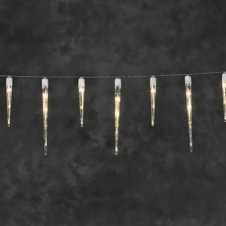 Konstsmide 2746-802 on valosarja, jossa on 16 jääpuikkoa ja 24 LEDiä (valon väri amber). 24V/IP44. Valosarjan pituus 3,75 m (liitäntäjohto 1 m).