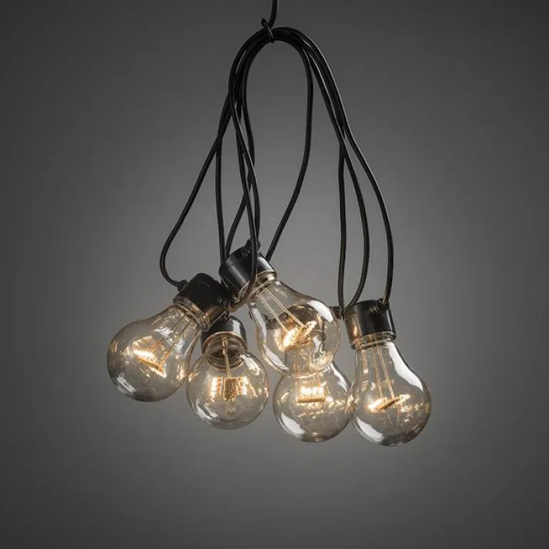 Konstsmide 2396-800 on 24 V:n lamppusarja. 10 lampun aloitussarja. E27. Sarjan pituus 9,15 m. Valon väri oranssi.