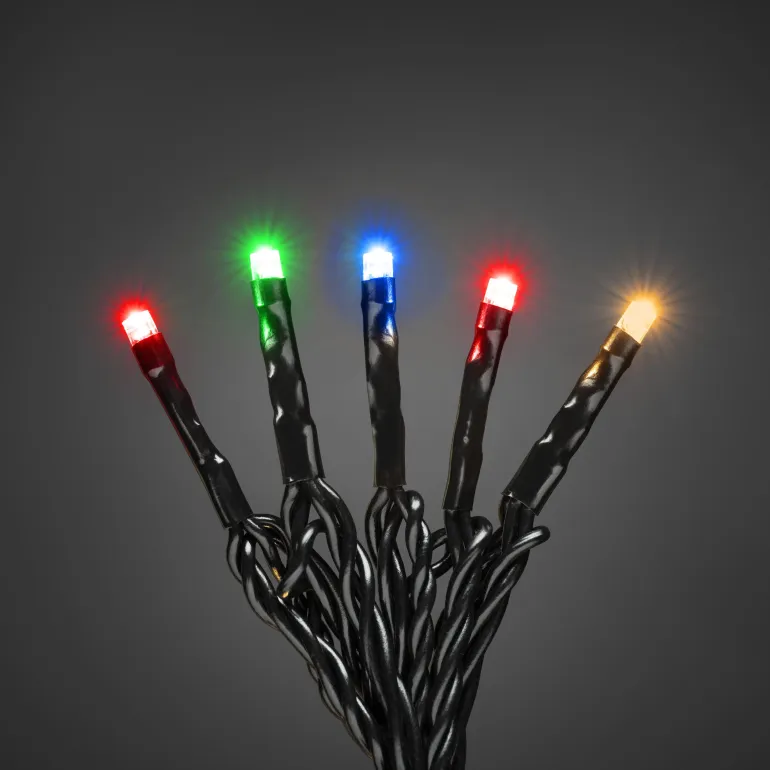 Konstsmide 3956-107 on valosarja, jossa on 100 lämpimän valkoista LEDiä (start/split). Pehmeä kaapeli, 31V / IP44.