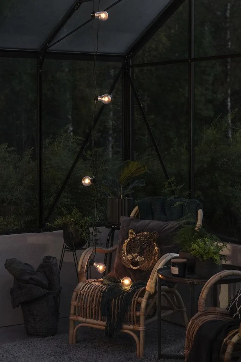 Paristokäyttöinen valosarja sisältäen 5 kappaletta amber-värisiä LED-lamppuja. Hyväksytty ulkokäyttöön, soveltuu erinomaisesti luomaan tunnelmaa parvekkeelle tai terassille.