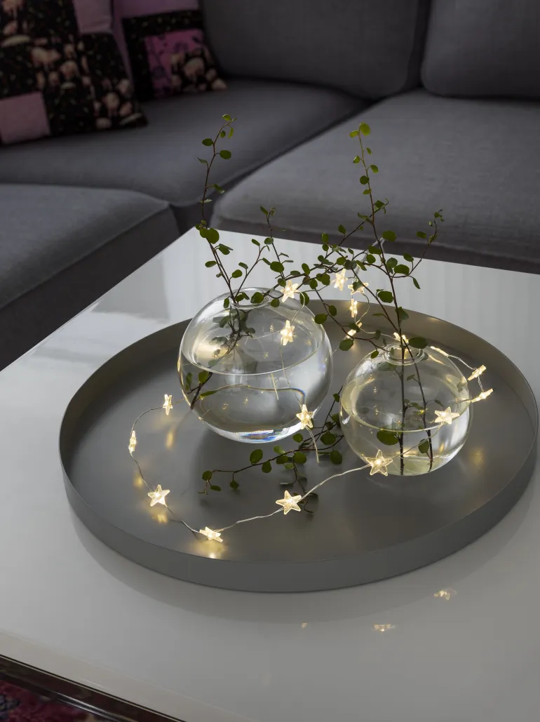Konstsmide 3199-103 on valosarja, jossa on 20 tähteä lämpimän valkoisilla LEDeillä. Valittavissa välkkyminen tai tasaisesti palava.