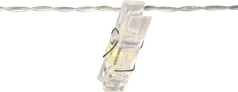 Konstsmide 1451-103 on valosarja, jossa on 12 LED-valokuvaklipsiä. Läpinäkyvä kaapeli, IP20.