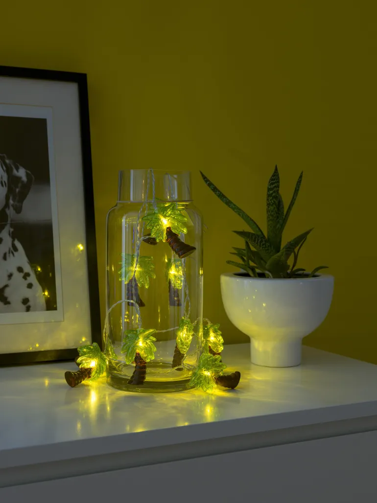 Konstsmide 3125-903 on valosarja 10 vihreällä palmulla, 3xAA. Ajastin 6 h.