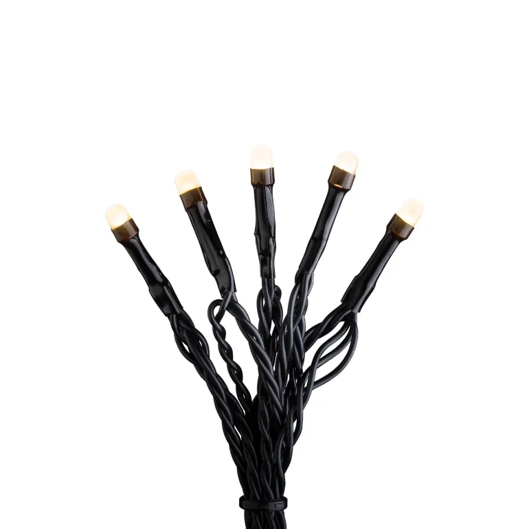 Konstsmide 3813-800 on valosarja, jossa on 200 LEDiä (huurrettu, valon väri amber). Musta johto. 30V/IP44.