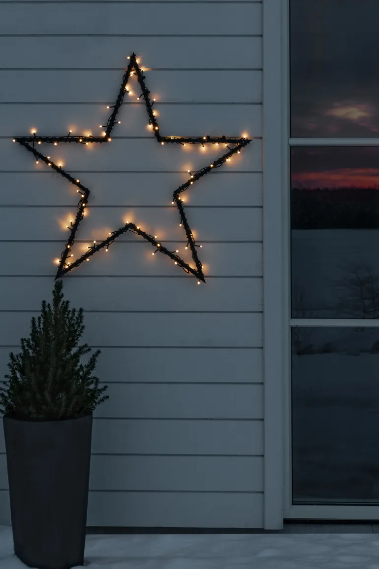 Konstsmide 3813-800 on valosarja, jossa on 200 LEDiä (huurrettu, valon väri amber). Musta johto.
