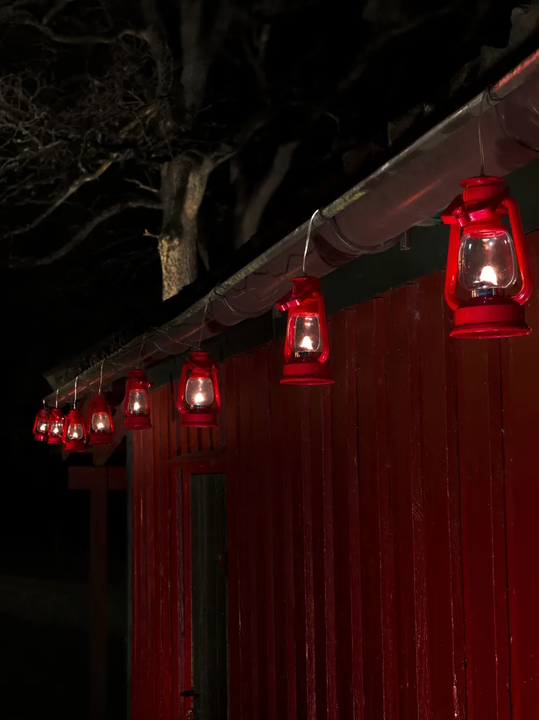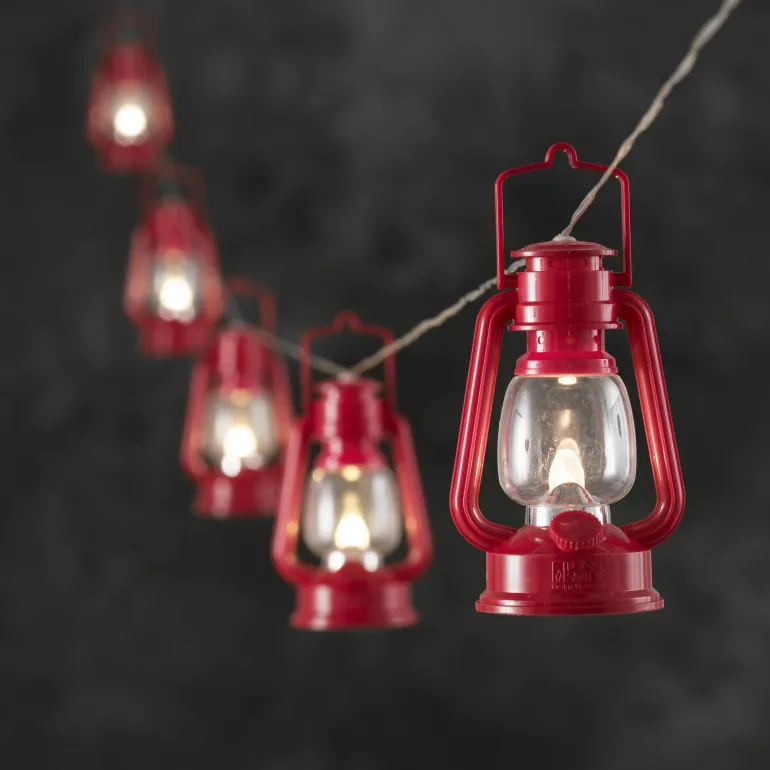 Konstsmide 4128-550 on valosarja, jossa on 8 punaista lyhtyä (LED lämpimän valkoinen). 3V/IP44.