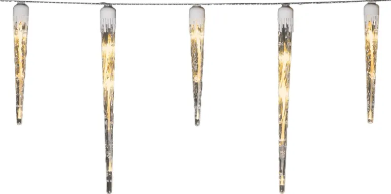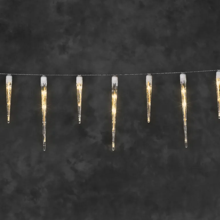 Konstsmide 2736-802 on valosarja, jossa on 32 jääpuikkoa ja 48 LEDiä (valon väri amber). Valkoinen johto 24V / IP44.