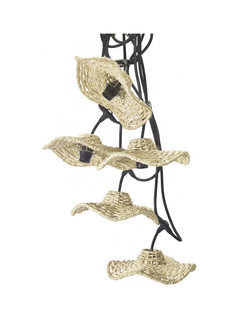 Flex Out -valosarja ulkokäyttöön (IP44) 5 x E27-lampunpitimellä (maks. 15W) ja varjostimella. Varjostimet käsin punottua raffiakuitua. Raffiapalmu on palmukasveihin kuuluva kasvi, joten varjostimet voivat poiketa toisistaan koossa ja väri voi muuttua ajan kuluessa. Valosarja soveltuu ulkokäyttöön, ja tämä varjostinmalli sopii parhaiten ripustettavaksi katon alle tai lasiterassin sisälle. Kokonaispituus 6,5 m, 2,5 m ensimmäiseen lampunpitimeen, sitten 80 cm kunkin lampunpitimen välillä. Etäisyys alas varjostimeen 15 cm. Varjostimien leveys 30 cm ja korkeus 8,5 cm. Ulkokäyttöön soveltuva valonlähde E27 ostetaan erikseen.