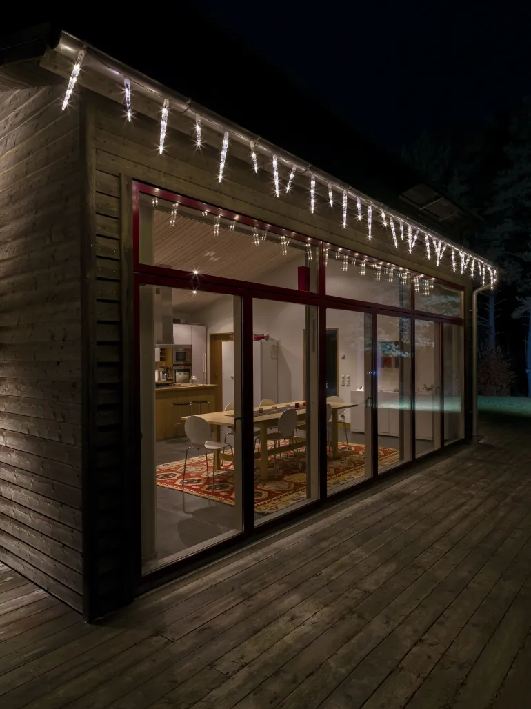 Konstsmide 2749-103 on valosarja, jossa on 32 jääpuikkoa ja 96 lämpimän valkoista LEDiä. Vilkkumistoiminnolla, IP44/trafo.