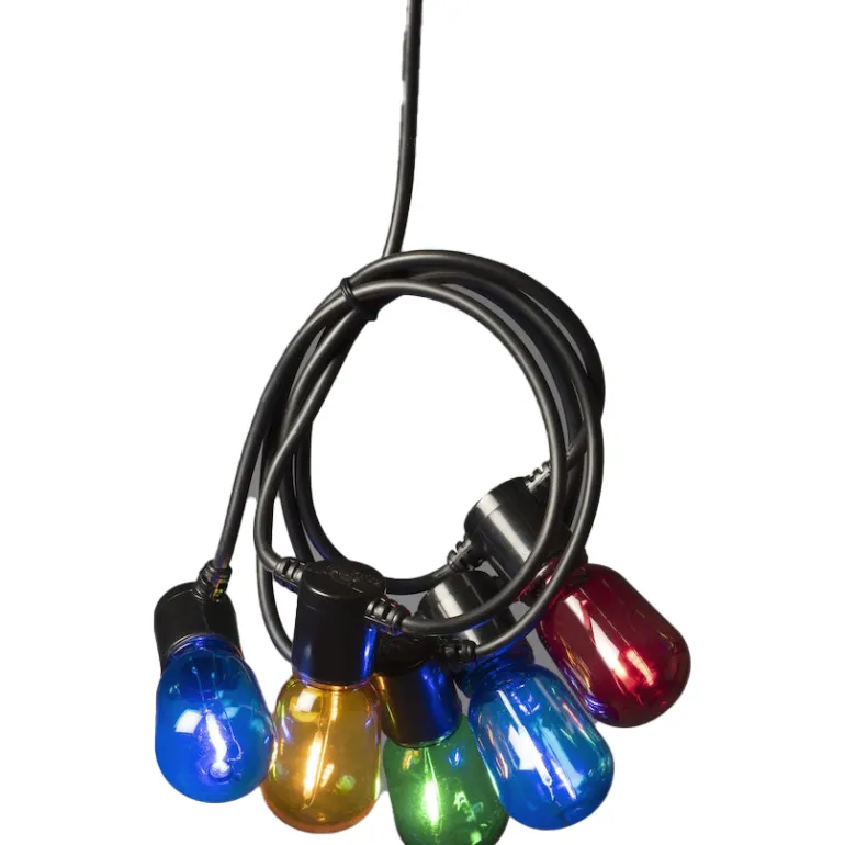 Valosarja, jossa 40 pienempää lamppua E14-kannalla. Lamput ovat keltaisia vihreitä, punaisia ja sinisiä. Liitäntäkaapeli on 10 metriä ja lamppujen etäisyys 25 cm. Sarjan kokonaispituus on 19,75 metriä. toimitukseen.