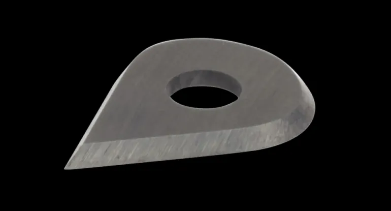 Anzan pisaranmuotoinen varaterä Anzan pieneen maalikaapimeen kotelolla. Teränvaihto on suositeltavaa terän tylsistyessä tehokkaampaa työskentelyä varten.