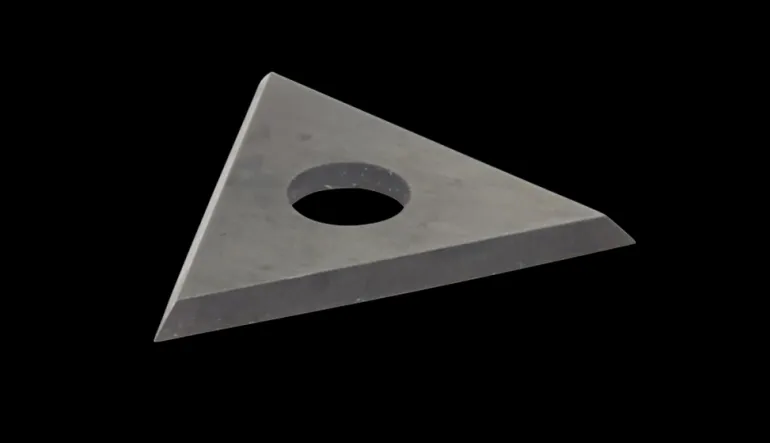 Anzan kolmionmuotoinen varaterä Anzan pieneen maalikaapimeen kotelolla.