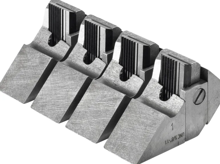 Leikkuuteräjärjestelmä ja pidike putkikierteelle UNC, ASME B1.1, UNC 7/16″-14. REMSin uudelleen teroitettava tangentiaalinen leikkuuteräjärjestelmä optimaalisella leikkausgeometrialla varmistaa helpon aloitus- ja kierreleikkauksen ja puhtaat kierteet. Leikkuuteräjärjestelmä kiinnitetään erityiseen pidikejärjestelmään. Leikkuuterät ja pidikkeet muodostavat leikkuusarjan. WS-leikkuuterät on valmistettu nuorrutuskarkaistusta, erikoiskarkaistusta erikoisteräksestä, materiaalille < 500 N/mm² (MPa). HUOMIO! Kuva voi poiketa todellisuudesta; se esittää tätä tuotetta vastaavaa versiota.