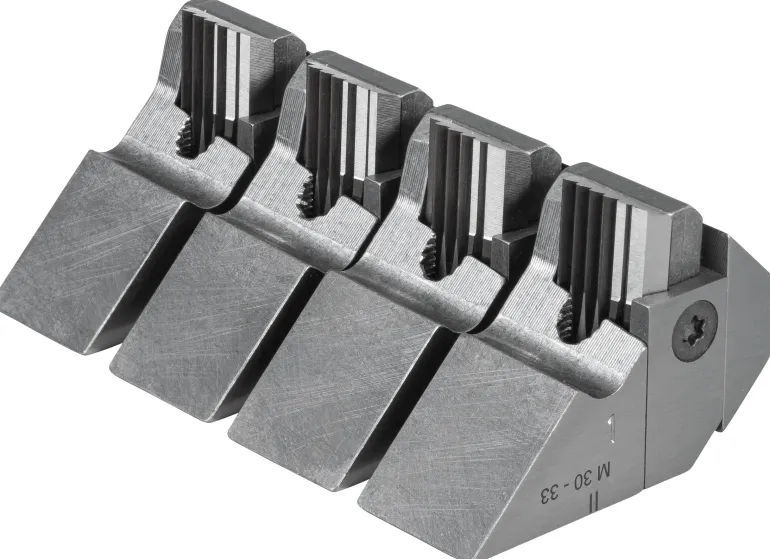 Leikkuuteräjärjestelmä ja pidike, kierre M raudoitusteräkselle, ISO 261 (DIN 13), M 24-27. REMSin uudelleen teroitettava tangentiaalinen leikkuuteräjärjestelmä optimaalisella leikkausgeometrialla varmistaa helpon aloitus- ja kierreleikkauksen ja puhtaat kierteet. Leikkuuteräjärjestelmä kiinnitetään erityiseen pidikejärjestelmään. Leikkuuterät ja pidikkeet muodostavat leikkuusarjan. HSS-leikkuuterät soveltuvat vaikeasti työstettäville materiaaleille > 500 N/mm² (MPa).