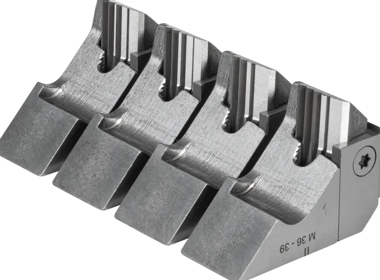 Leikkuuteräjärjestelmä ja pidike, kierre M raudoitusteräkselle, ISO 261 (DIN 13), M 24-27. REMSin uudelleen teroitettava tangentiaalinen leikkuuteräjärjestelmä optimaalisella leikkausgeometrialla varmistaa helpon aloitus- ja kierreleikkauksen ja puhtaat kierteet.