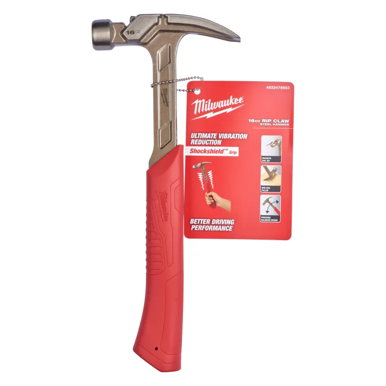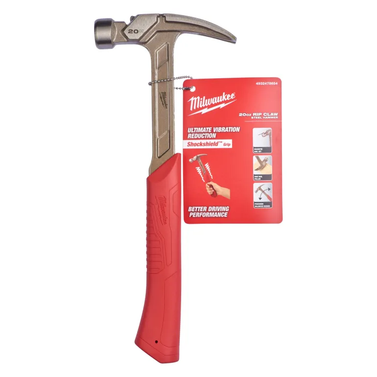 Iskua vaimentava kahva. Suora haara purkutöihin. Magneettinen naulanohjain. Naulanvetäjä sivulla. Kestävä I-beam-kahva murtumattomalla rakenteella. Tarkka tasapainotus lisää käyttäjäystävällisyyttä.