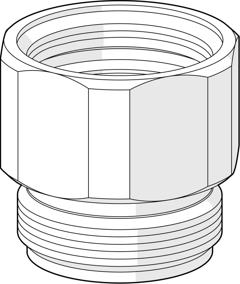 Oras 105302 -takaiskuventtiili. Takaiskuventtiilin liitin G 3/4 sisäkierteellä – G 3/4 ulkokierre.
