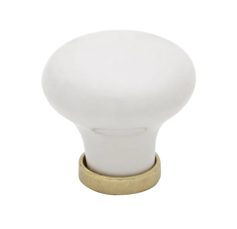 Kylpyhuoneen kaapin vedin, halkaisija 30 mm ja messinkinen yksityiskohta. Valmistettu posliinista perinteiseen tyyliin.