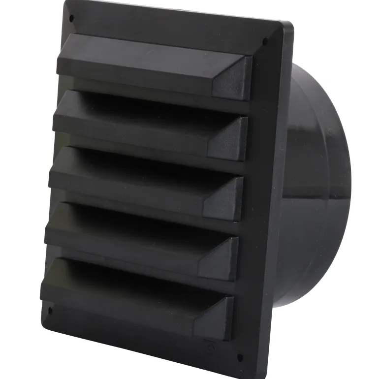 Ulkoinen venttiilisäleikkö, jossa putkiyhde Ø100 mm kanavalle. Varustettu integroidulla hyönteisverkolla, reikäkoko 105 mm.