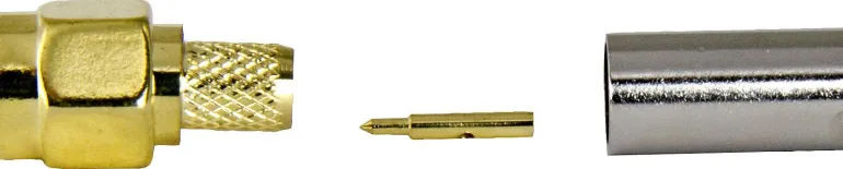SMA-tyyppinen puristusliitin. Liitokset ovat erittäin korkealaatuisia kullattujen pintojen ansiosta, myös liitinnastat.