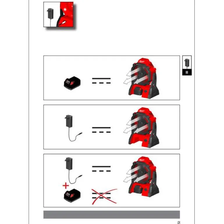 Milwaukee 4931452609 on 240 V:n verkkovirtasovitin. Sopivuus: M18/AF-0 rakennustuuletin ja M12-18 JSSP-0 radio. Ei lataa akkua.