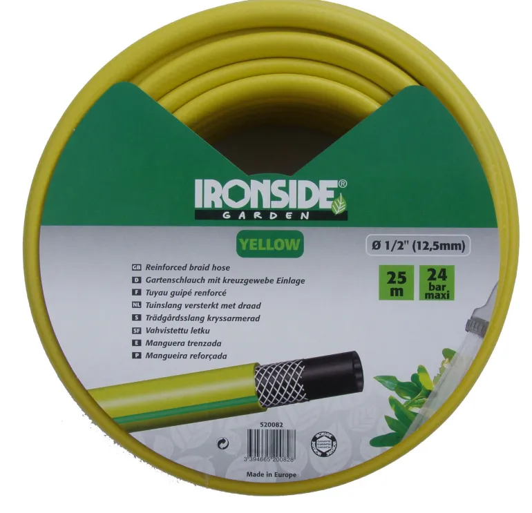 Kierretty puutarhaletku, 3 kerrosta, 1/2″ (12,5mm). Sisusta musta sileä PVC käsiteltynä levää hylkivästi ja ulkopuolelta vihreä. Suurin työpaine 8 baaria ja käytettävissä lämpötiloissa -10°C – +50°C. Timitetaan ainoastaan kokonaisina rullina. Paino: 120 g/m.