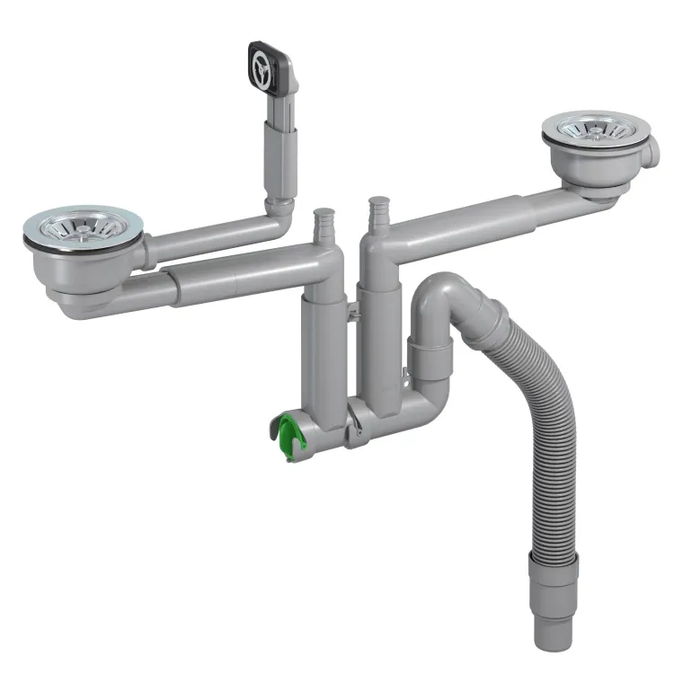 Intra Smartloc E -vesilukko 2-altainen koripohjaventtiileillä ja ylivuotosarjalla (pyöreä). Sopii pesupöydille kahdella altaalla.