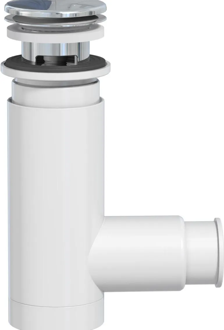 Svedbergs Easy Clean 1214 -vesilukko, sis. taipuisan putken ja pohjaventtiilin (Pop up). Ylivuodolla ilman poistoputkea.