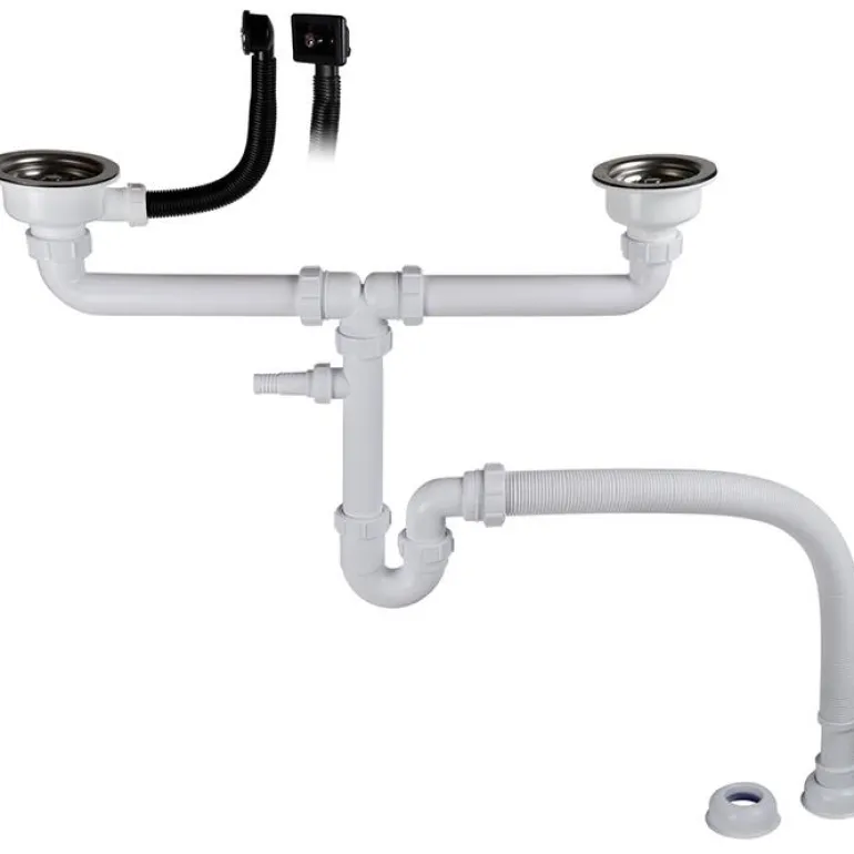 Vesilukko tiskipöytään, sis. koriventtiilin ja ylitäyttösuojan (pyöreä tai nelikulmainen aukko). Sopii tiskipöytiin, joissa on 2 allas. Viemäriyhde 50 mm. Käytettäessä pyöreää tiskiallasta ylitäyttösuojan tiiviste käännetään pyöreään muotoon sopivaksi.