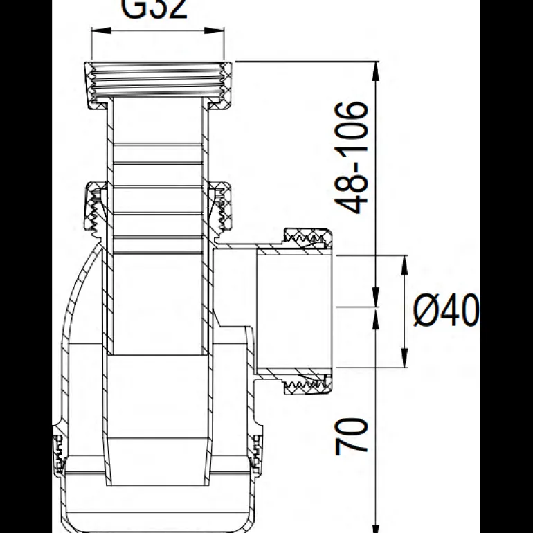 Valkoisesta PP-muovista valmistettu vesilukko. Vesilukon halkaisija on 40 mm ja kierre G32. Malli soveltuu pesualtaisiin.