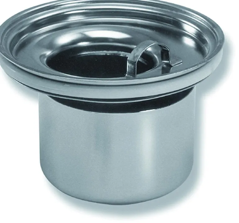 Vesilukkoelementti Sigyn- ja Balder-lattiakaivoja varten. Valmistettu ruostumattomasta teräksestä, koko 125 mm.