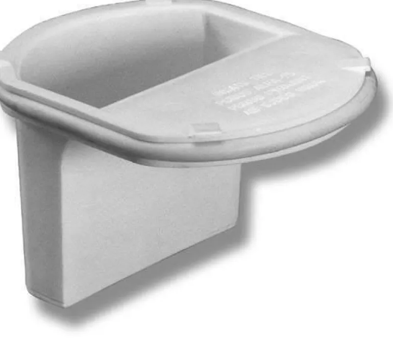 Purus Square- ja Alpha 75 -kaivojen vesilukkoelementti. Valmistettu valkoisesta PP-muovista.