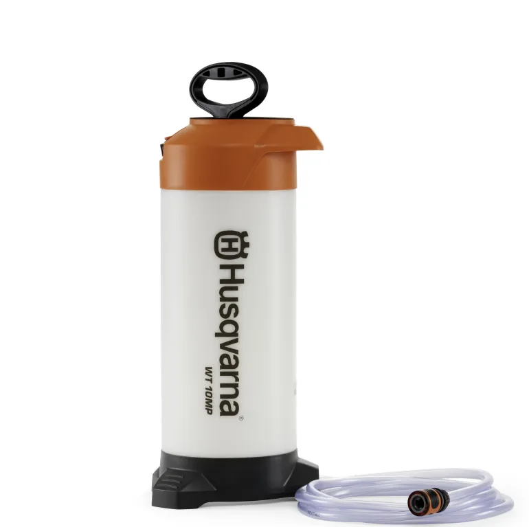 Jos lähellä ei ole vesijohtoa, voit käyttää painevesisäiliötä. Kahvan pumppaus muutaman kerran antaa vaaditun paineen. Säiliön tilavuus on 10 litraa ja mukana tulee letku, joka on liitetty koneen märkäleikkaussarjaan.