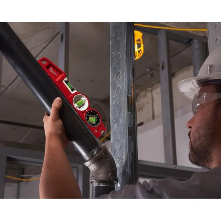 Milwaukee TORPEDO BLOCK on 25 cm vesivaaka, jossa 360° säädettävä ja lukittava libelli. Tunnista ja kopioi kulma ja lukitse sen jälkeen libelli paikoilleen säilyttääksesi kulman. Kulma ei muutu taskussa eikä laukussa.