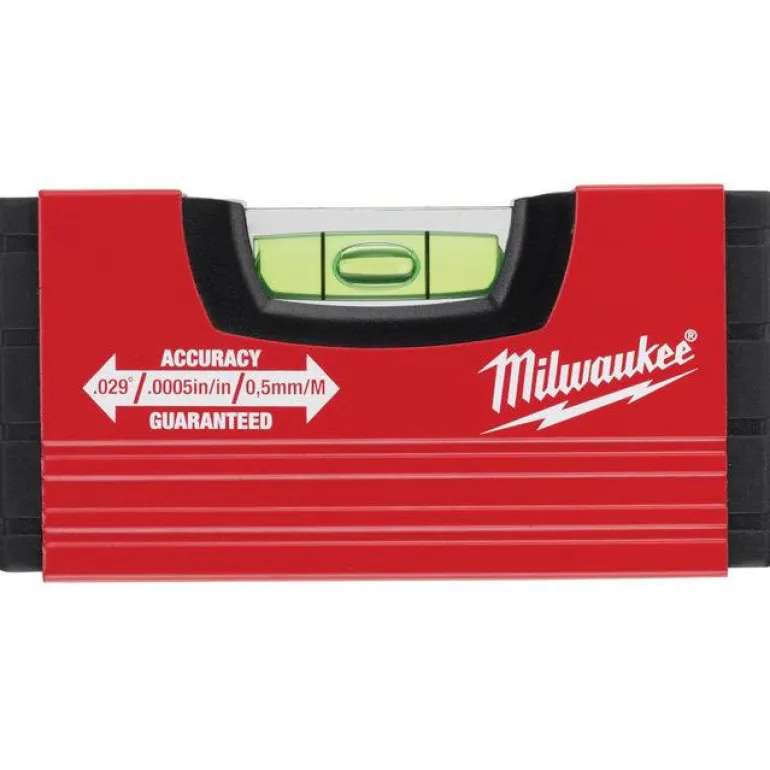 Milwaukee MINI on 10 cm vesivaaka, joka on pieni ja kevyt alumiinirakenteensa ansiosta. Tarkkuus 0,029°.
