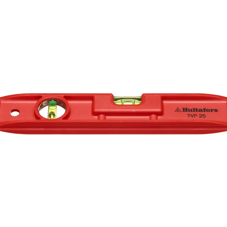 Hultafors TVP 25 on iskunkestävä punainen vesivaaka, polystyreenistä valmistettu, kestää lämpötilat -15 – +60 °C. Rikkoutumattomat lohkolibellit, erittäin läpinäkyvät ja kestävät. Vaakalibelli itsevalaisevalla heijastuspinnalla. Pohjassa on V-ura, jotta voidaan käyttää putkissa.