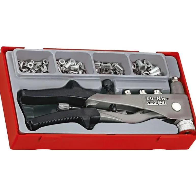 Teng Tools TTNR81 on 81-osainen vetoniittimutterisarja, jossa vetoniittipihdit ja asennustyökalu POP-nut M 3, M 4, M 5 ja M 6 sekä POP-nut kustakin koosta.