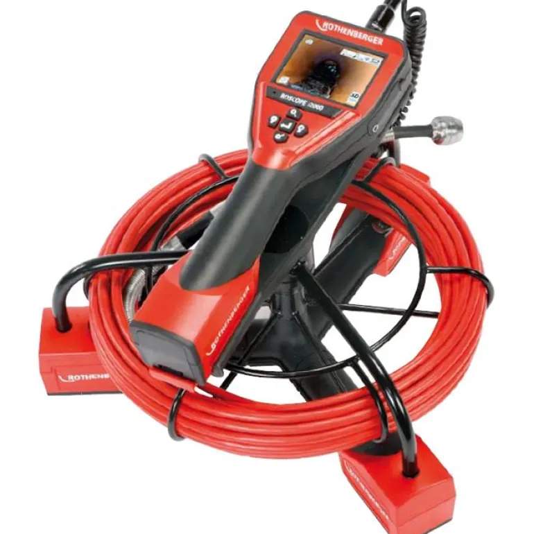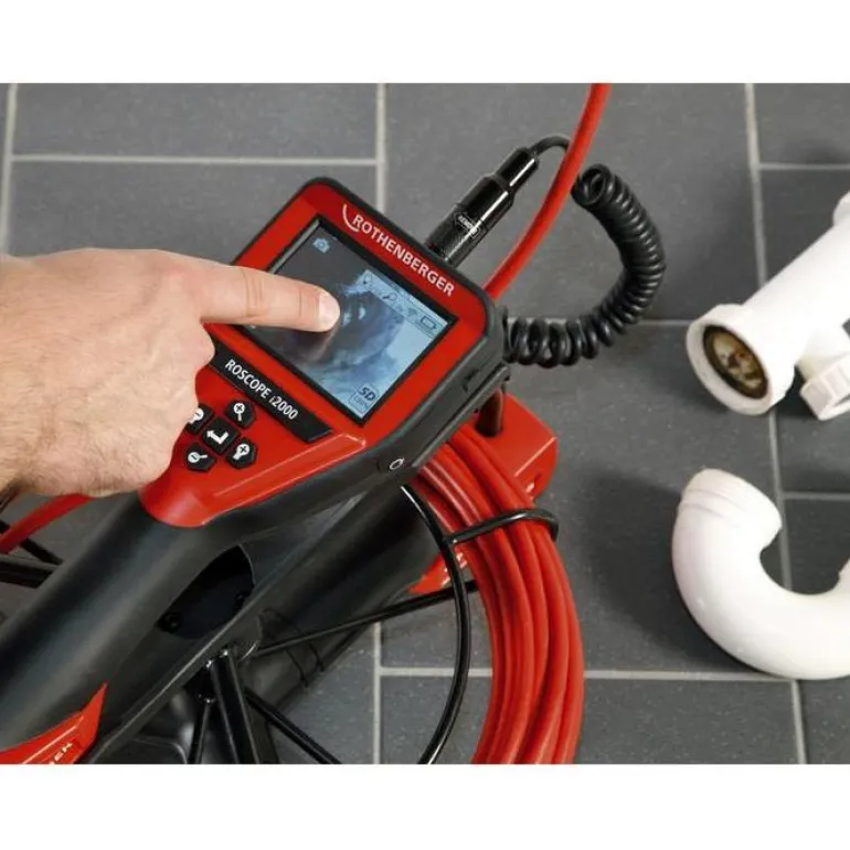 Rothenberger Roscope i2000 kestävä, vedenpitävä ja iskunkestävä videoskooppi, jolla voi joustavasti ja nopeasti tarkistaa vaikeasti tarkistettavia tiloja ja etsiä niissä olevia vikoja. Käsiyksikkö sekä vesitiivis ja itsetasaava kamerapää Ø17 mm ja 0,9 m:n joutsenenkaula antavat hyvän valokeilan. Helppokäyttöinen värikosketusnäyttö ja valikko. Tallenna tarkastus suoraan yksikköön tai älypuhelimeen/tablettiin (iOS/Android). Yhdistämällä laitteen WiFi-yhteydellä esim. puhelimeen työn voi tallentaa, tarkistaa ja lähettää välittömästi asiakkaalle tai kollegalle.