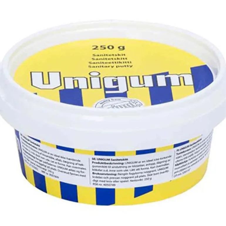 Unipak Unigum on 250 g ei-kovettuva synteettinen kumikitti, joka ei sisällä lainkaan orgaanisia liuottimia. Sitä käytetään ensisijaisesti WC-istuinten ja keittiöviemärien liitäntöjen tiivistämiseen sekä asennettaessa teräsaltaita.