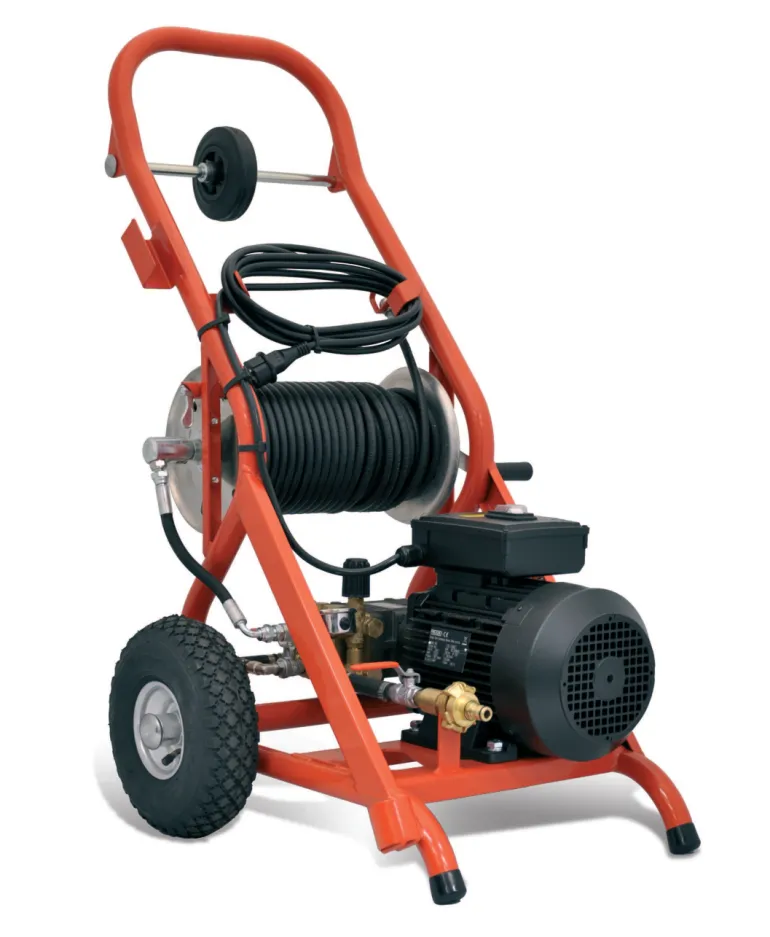 Tehokkaalla 2,2 kW moottorilla ja ylikuormitussuojalla varustettu puhdistuskone, joka on suunniteltu viemärien puhdistamiseen. Koneessa on kaksinkertainen tuloliitäntä, jossa on urosliitäntä puutarhaletkulle.