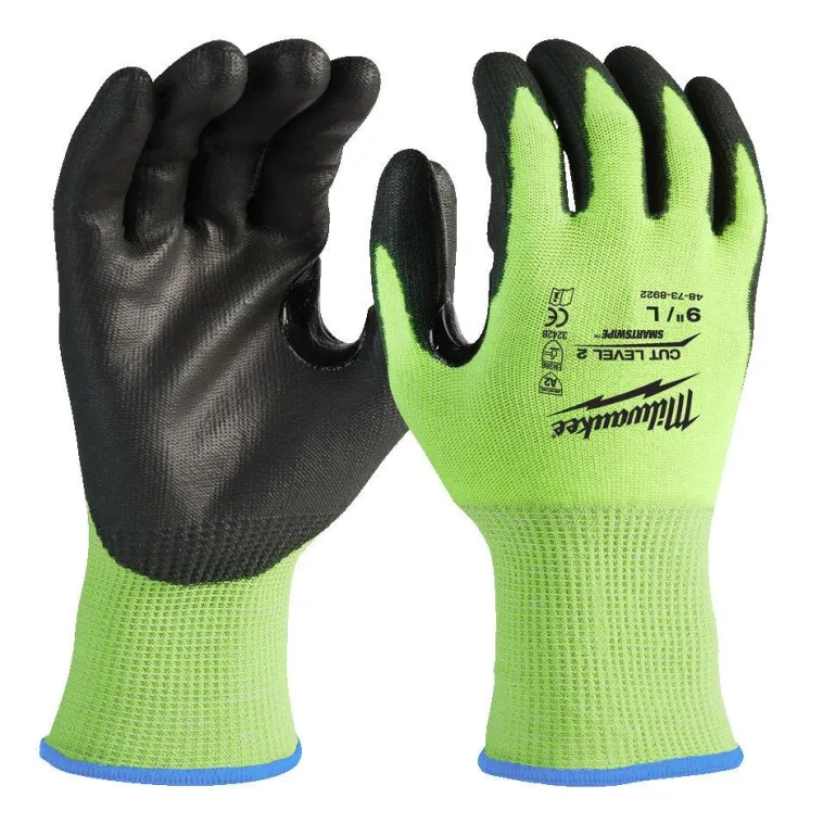 Milwaukee 4932479923 on High Visibility-käsine viiltosuojalla (taso 2/B), joka on valmistettu fluoresentista materiaalista erinomaista näkyvyyttä varten. Kevyet ja erikoisen ohuet käsineet PU-upotetulla kämmenellä, joka lisää sormituntumaa. Viiltosuojataso 2/B on erinomaisesti soveltuva materiaalin käsittelyyn, puutöihin, maalaamiseen ja kipsilevy- sekä kattoasennuksiin. Vahvistettu nitriilipäällyste antaa lisäsuojan peukalon ja sormien välille. Käsineessä on myös Smartswipe-kosketusominaisuus kämmenessä ja sormenpäissä, joka mahdollistaa kosketusnäyttöjen käytön käsineet päällä. EU-sertifioitu viiltosuojaus: EN ISO 21420 ja EN388:2016 (3242B).