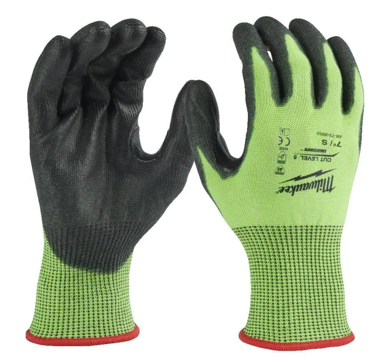 Milwaukee 4932479934 on High Visibility-käsine viiltosuojalla (taso 5/E), joka on valmistettu fluoresentista materiaalista antaen erinomaista näkyvyyttä heikon valaistuksen ympäristössä. Viiltosuojataso 5/E soveltuu erinomaisesti pellin ja lasin käsittelyyn sekä kaapelien kuorintaan. Kevyet ja erikoisen ohuet käsineet PU-upotetulla kämmenellä, joka lisää sormituntumaa. Vahvistettu nitriilipäällyste antaa lisäsuojan peukalon ja sormien välille. Käsineessä on myös Smartswipe-kosketusominaisuus kämmenessä ja sormenpäissä, joka mahdollistaa kosketusnäyttöjen käytön käsineet päällä. EU-sertifioitu viiltosuojaus: EN ISO 21420 ja EN388:2016 (4X43E).